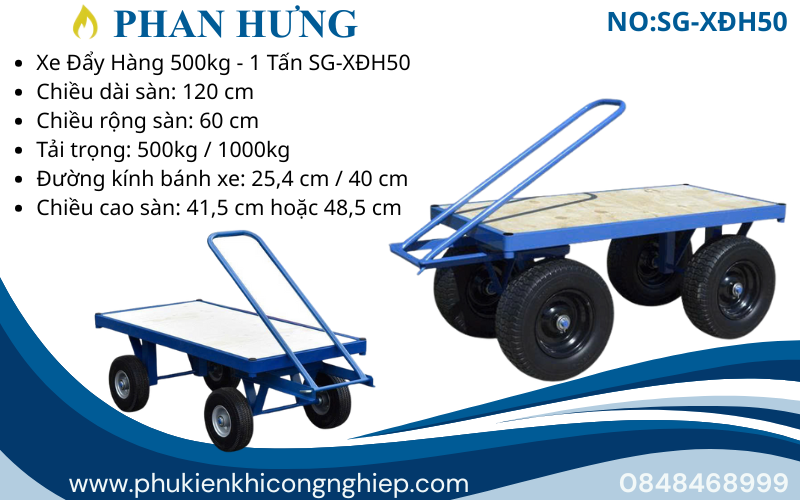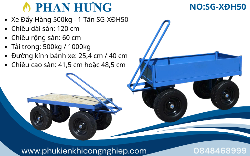 • Tên: Xe Đẩy Hàng Tải Trọng 500kg – 1 Tấn SG-XĐH50